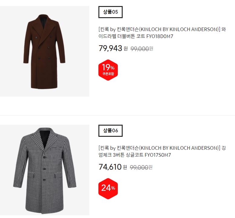 킨록 by 킨록앤더슨 프리미엄 코트 6종 할인 정보 [링크]