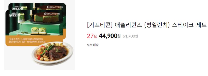 할인 품목 : 성인 샐러드바, 스테이크 세트 등