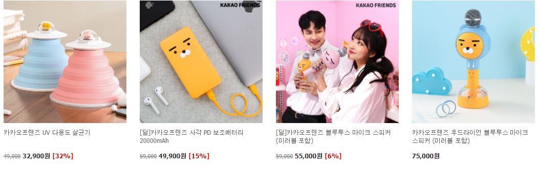 카카오프렌즈 다양한 제품을 할인 판매하네요.