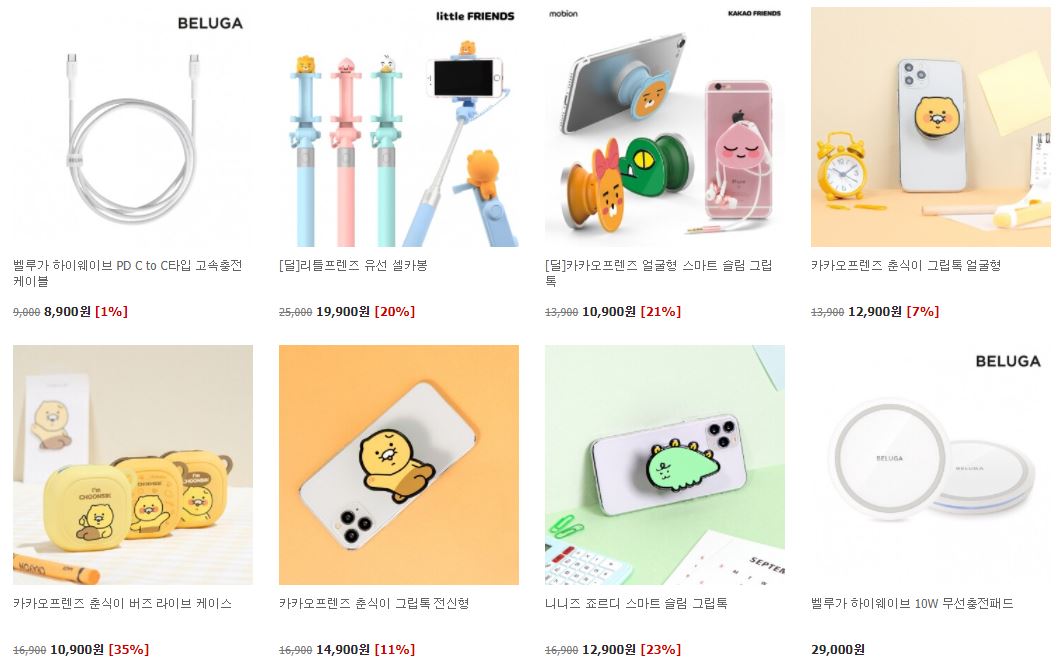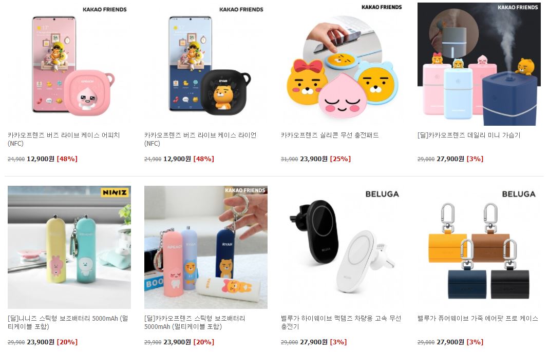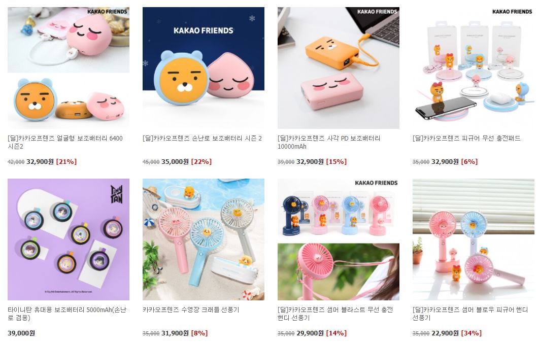 카카오프렌즈 다양한 제품을 할인 판매하네요.