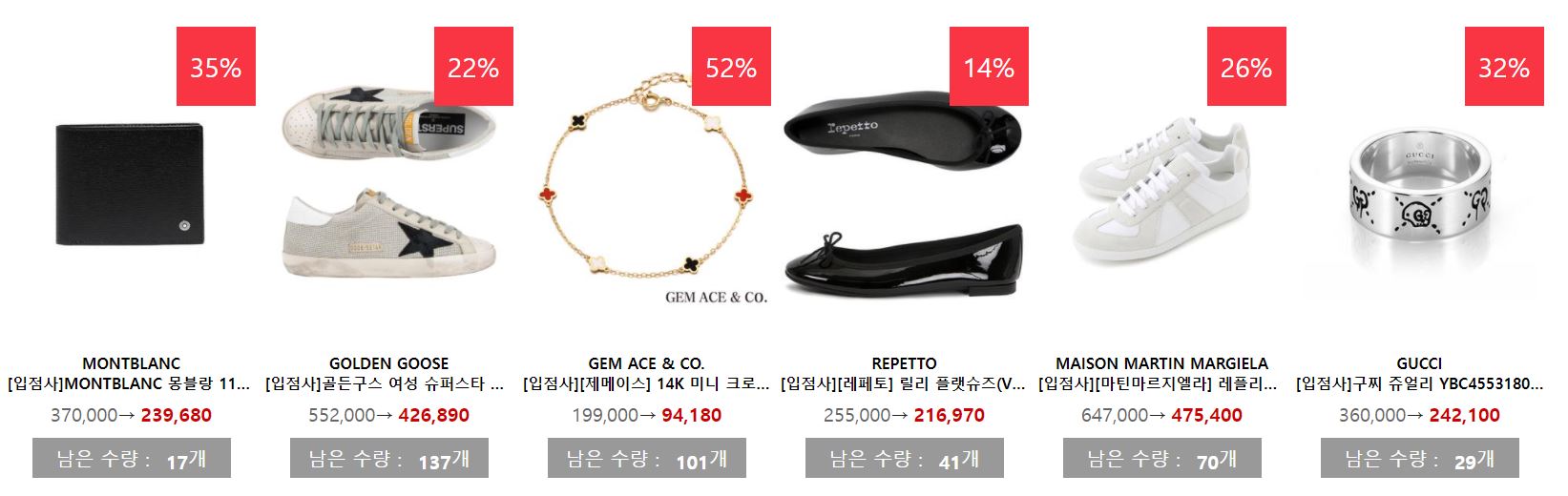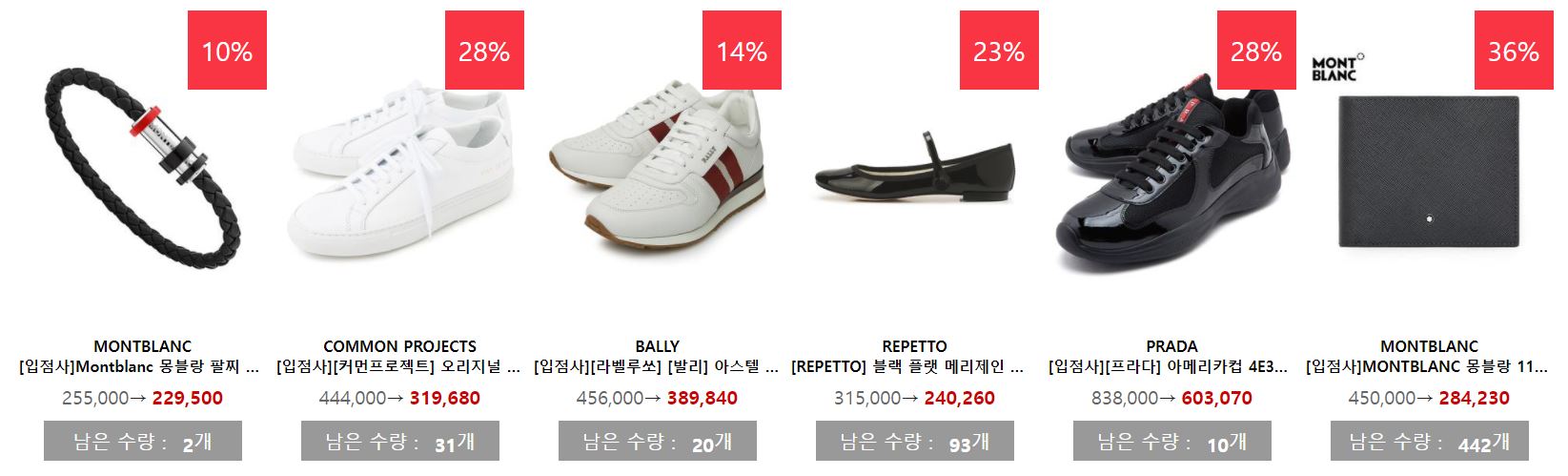 할인 품목 : 의류, 신발, 악세사리, 시계 등