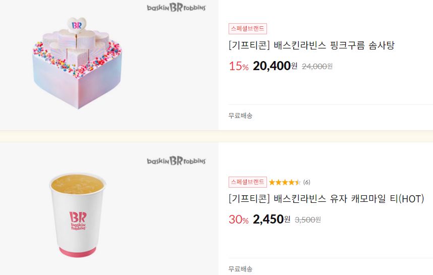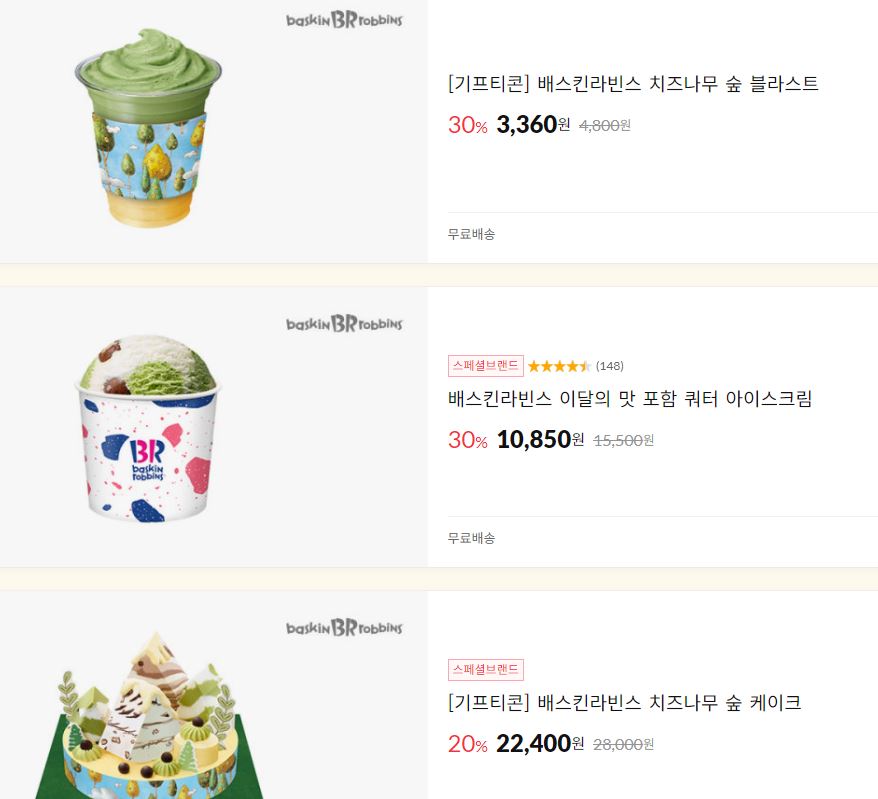 배스킨라빈스 다양한 메뉴를 할인 판매하네요.