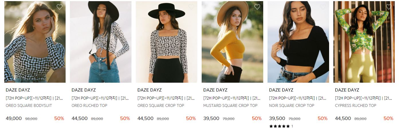 DAZE DAYZ 다양한 제품을 할인 판매하네요.