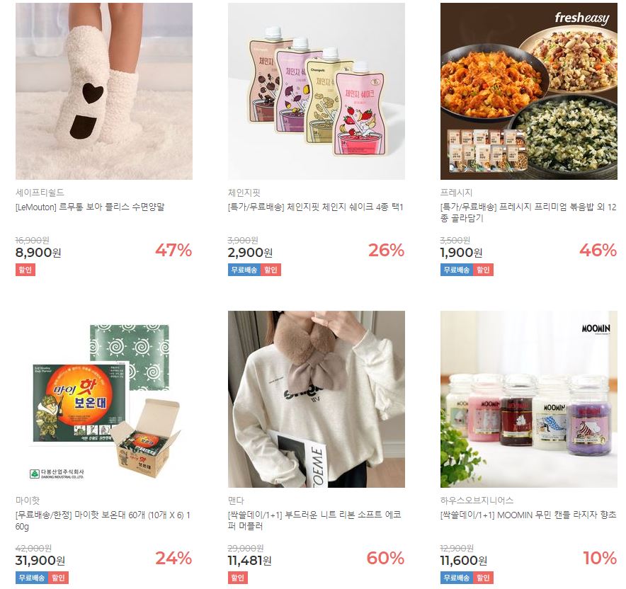 할인 품목 : 의류, 핫팩, 리빙박스 등