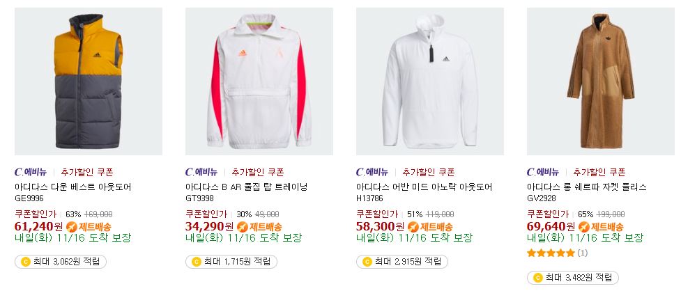 할인 품목 : 자켓, 티셔츠, 팬츠 등