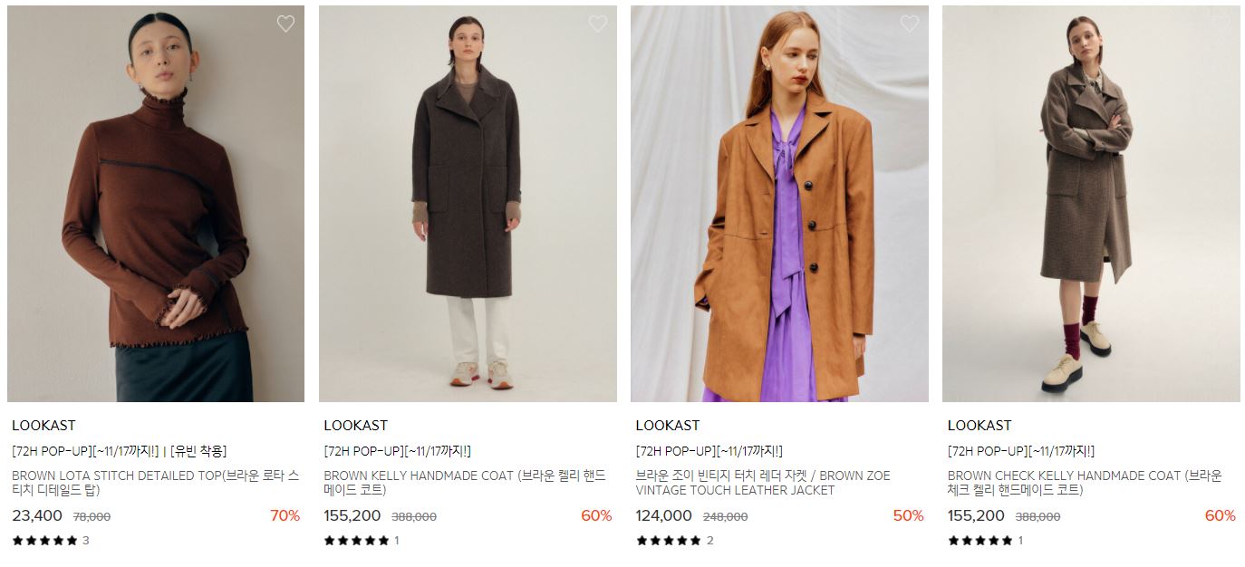 할인 품목 : 코트, 블라우스, 스커트 등