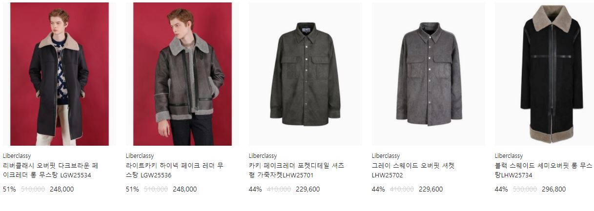 할인 품목 : 코트, 점퍼, 팬츠 등