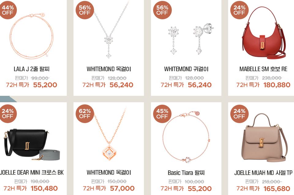 할인 품목 : 목걸이, 팔찌, 가방 등