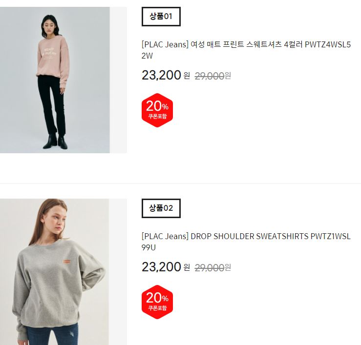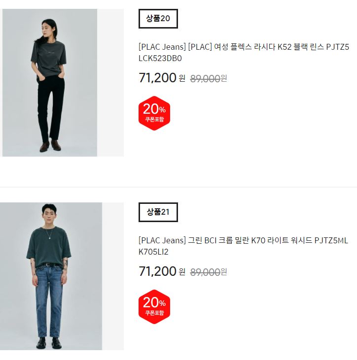 할인 품목 : 티셔츠, 팬츠 등