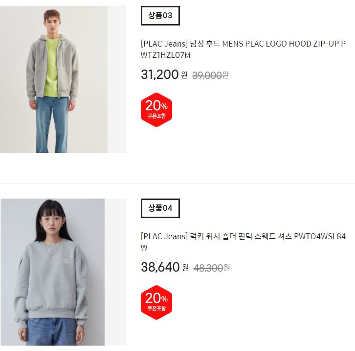할인 품목 : 티셔츠, 팬츠 등