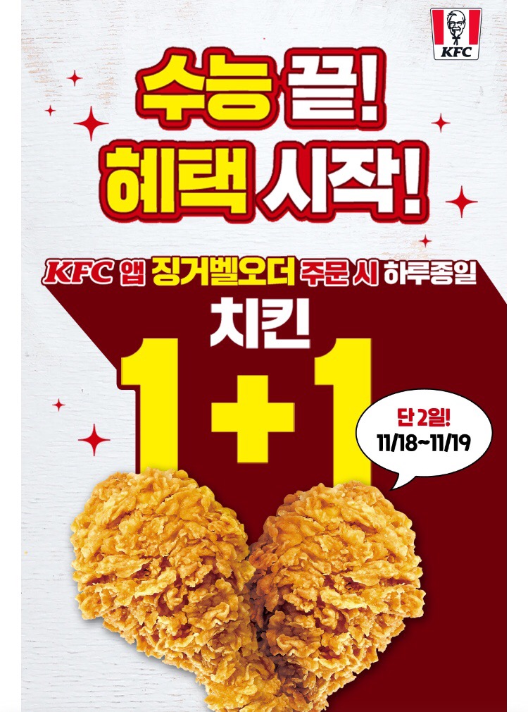 KFC 치킨 1+1 이벤트 정보 포스팅입니다.