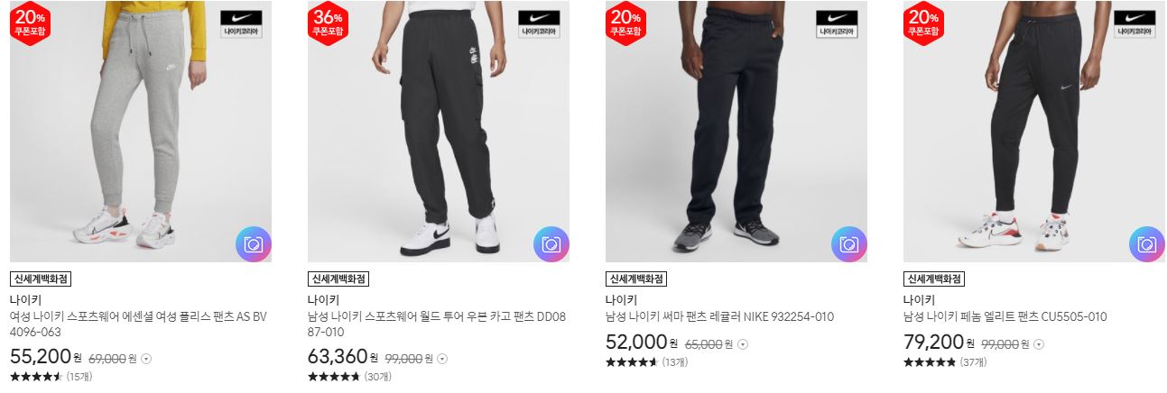 할인 품목 : 운동화, 티셔츠, 팬츠 등