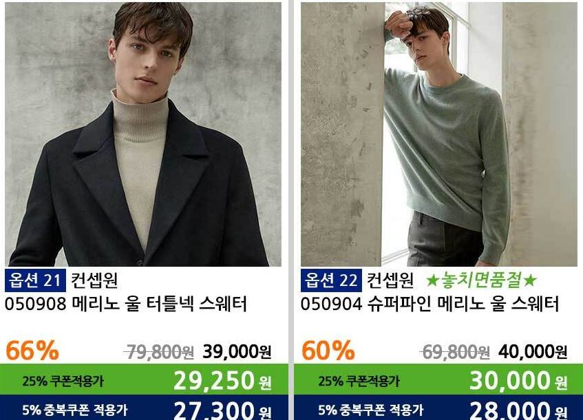 할인 품목 : 코트, 니트, 팬츠 등