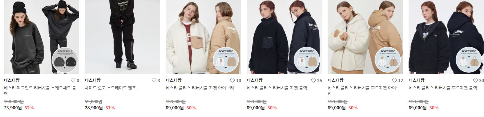 할인 품목 : 점퍼, 티셔츠, 팬츠 등