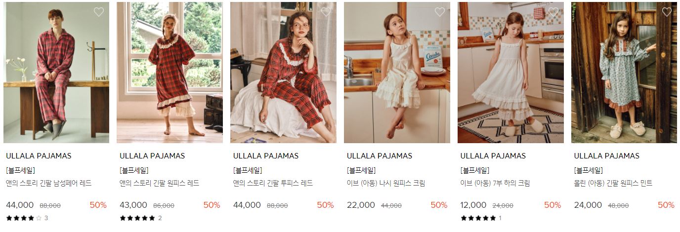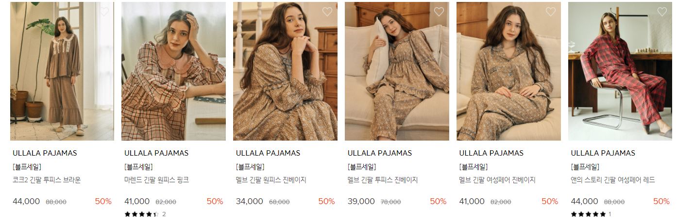 ULLALA PAJAMAS 다양한 제품을 할인 판매하네요.