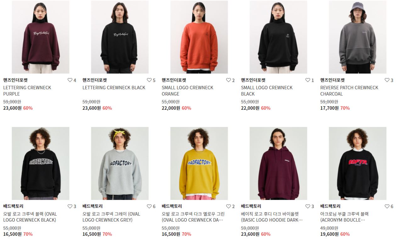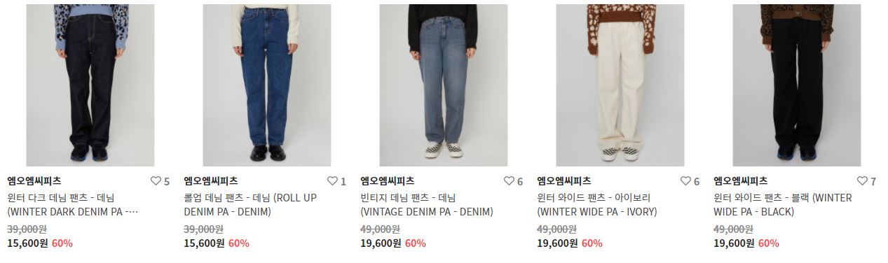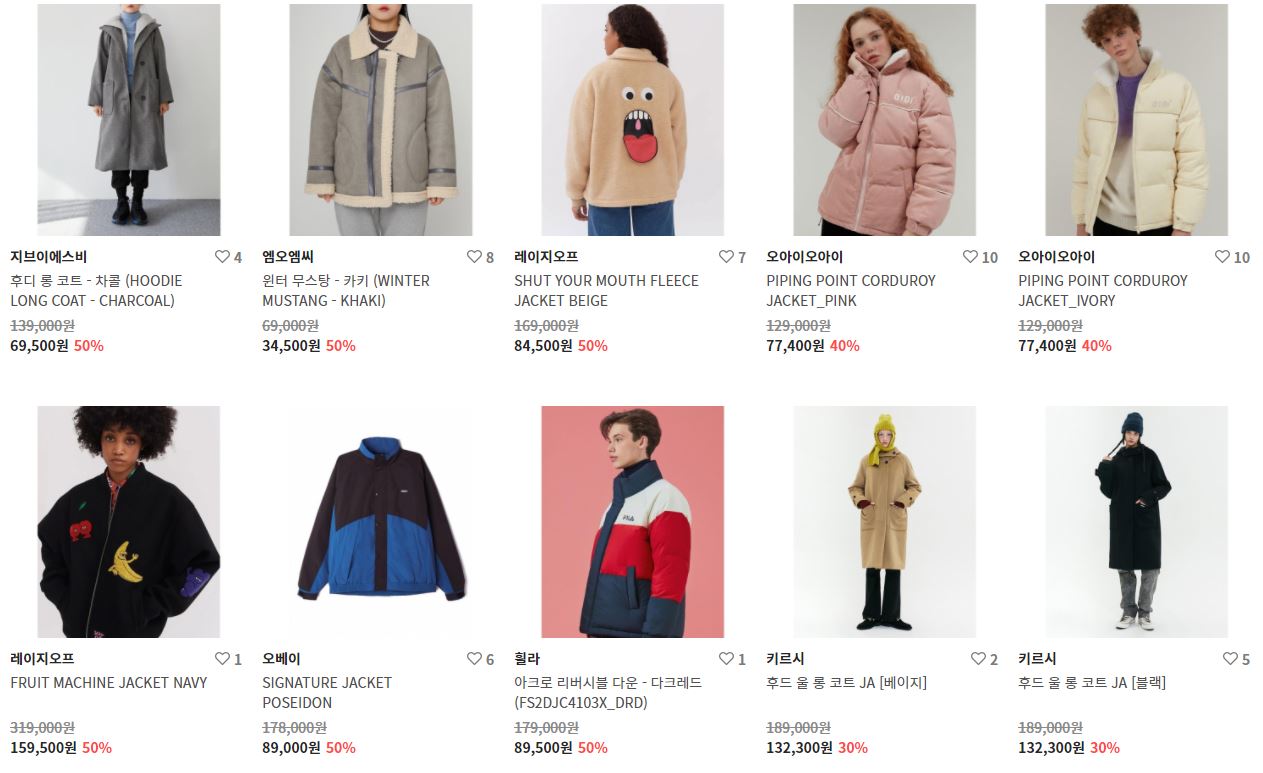 할인 품목 : 점퍼, 니트, 팬츠 등