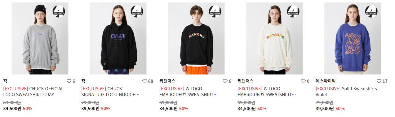 할인 품목 : 점퍼, 니트, 팬츠 등
