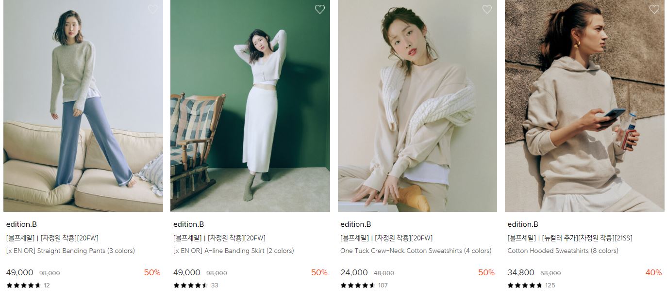 할인 품목 : 니트, 팬츠, 티셔츠 등