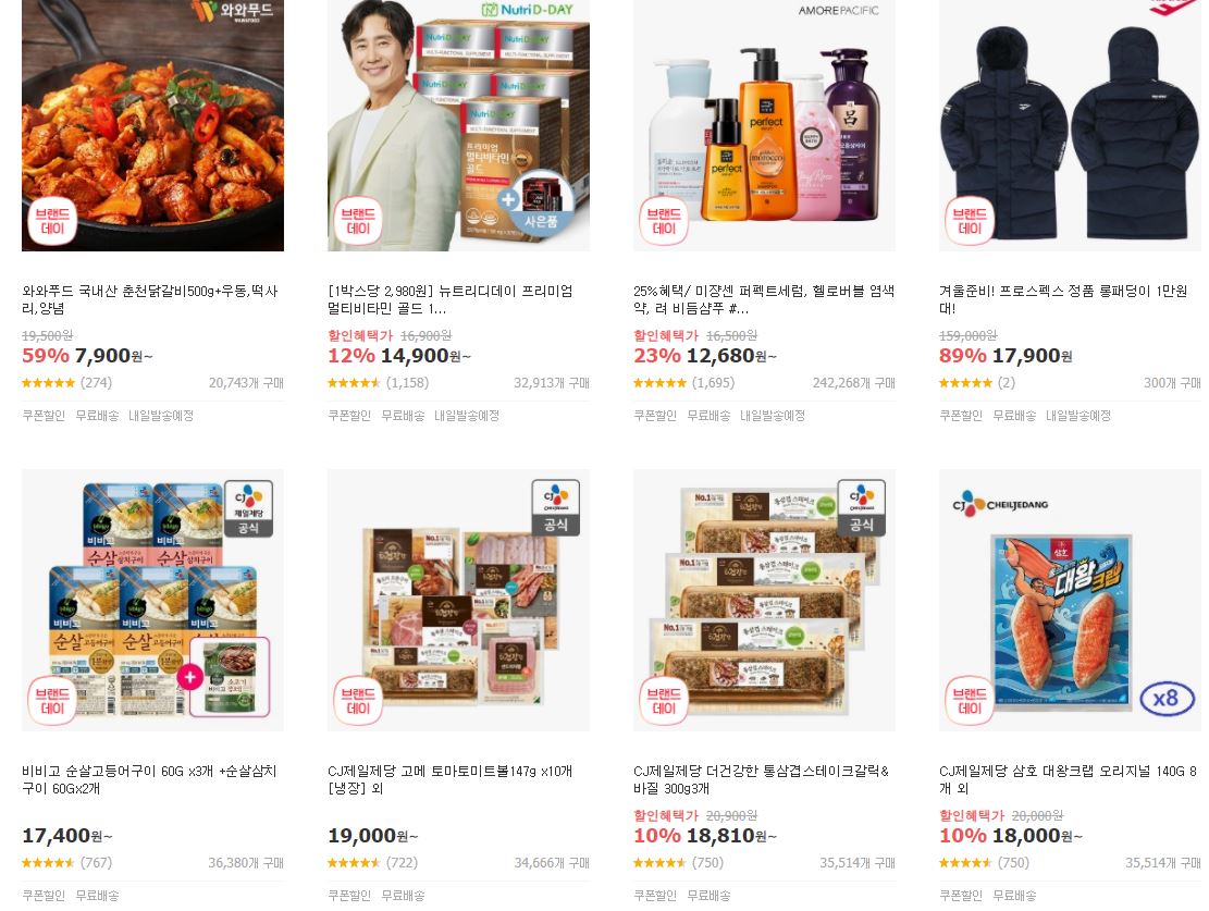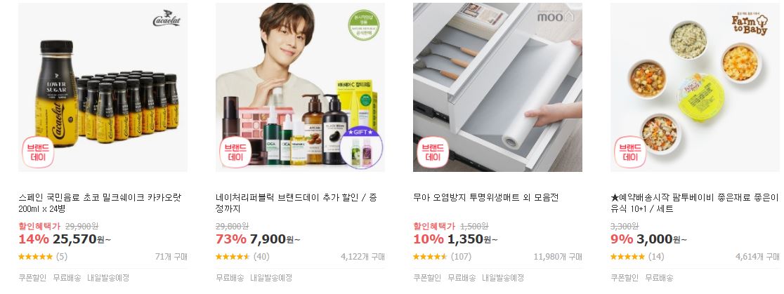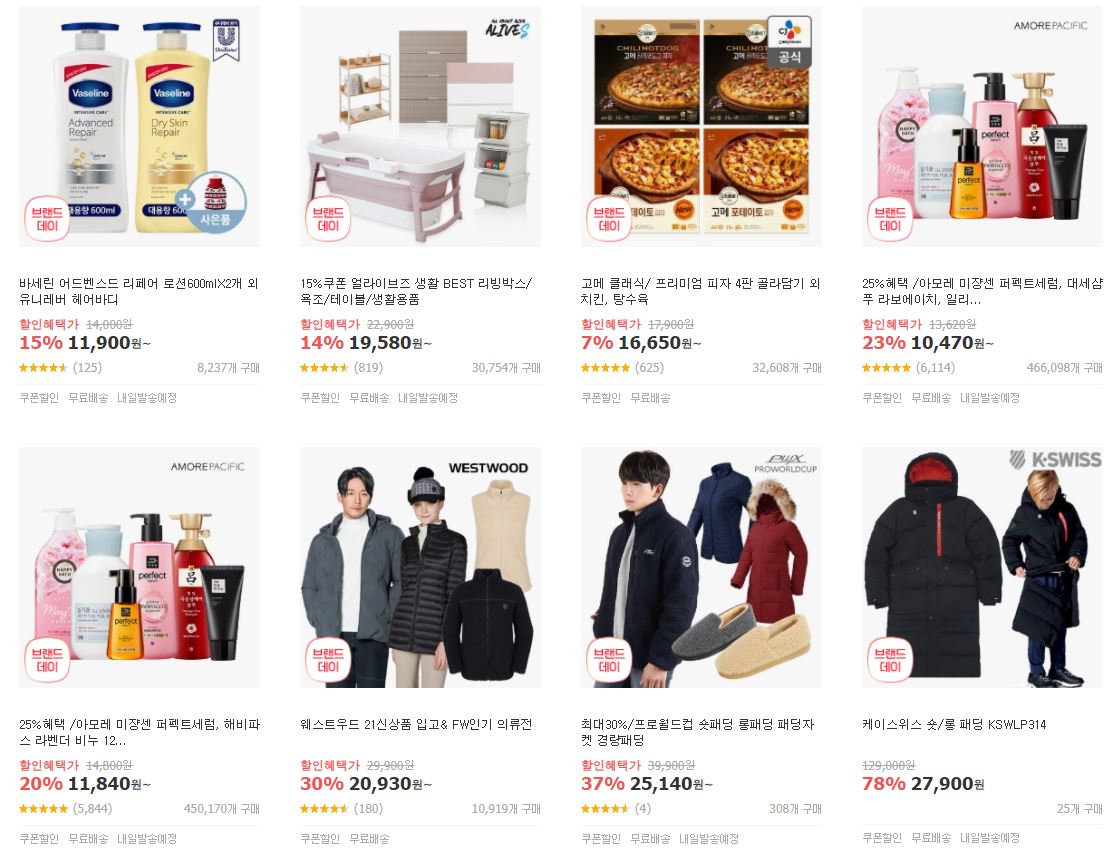 할인 품목 : 화장품, 식품, 의류 등