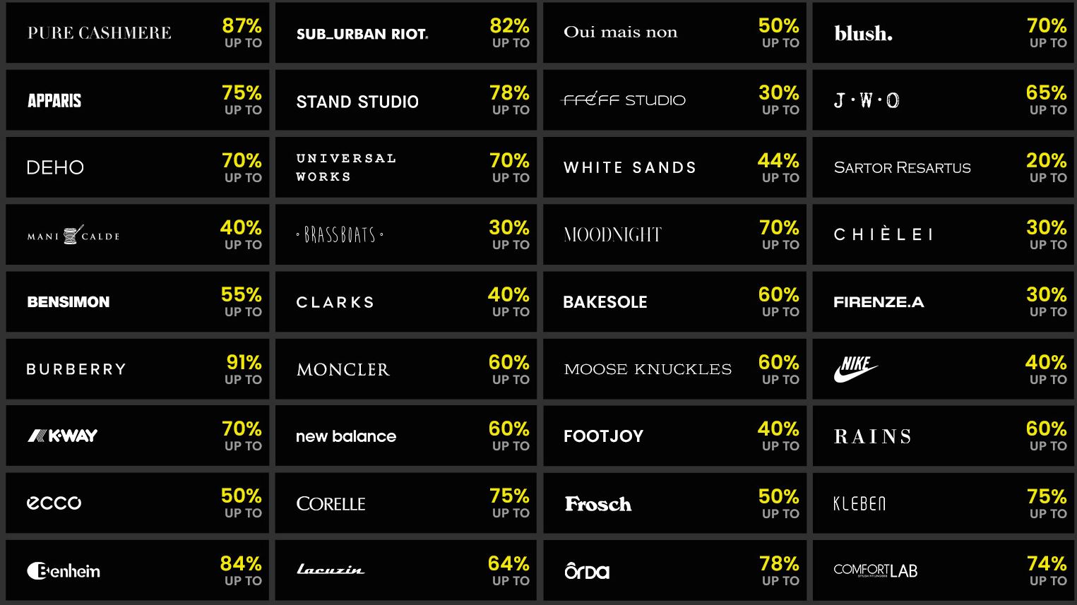 할인 품목 : 의류, 가방, 신발 등