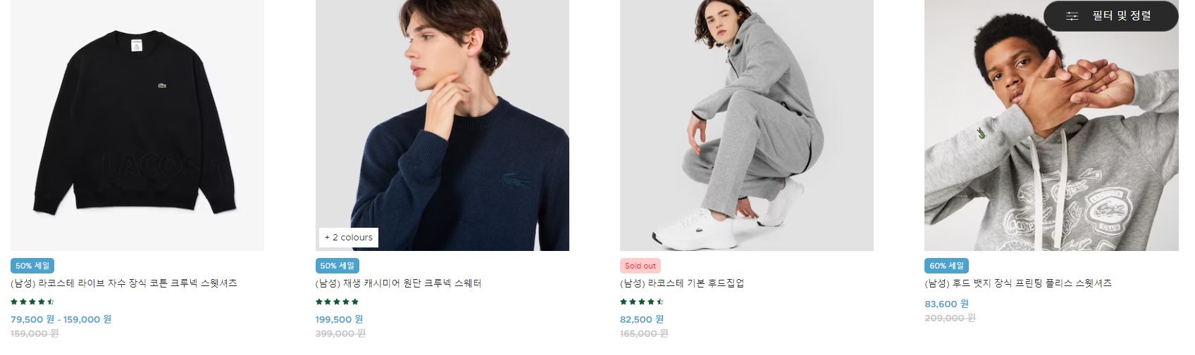 할인 품목 : 스웨터, 점퍼, 티셔츠 등