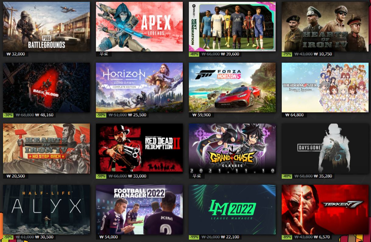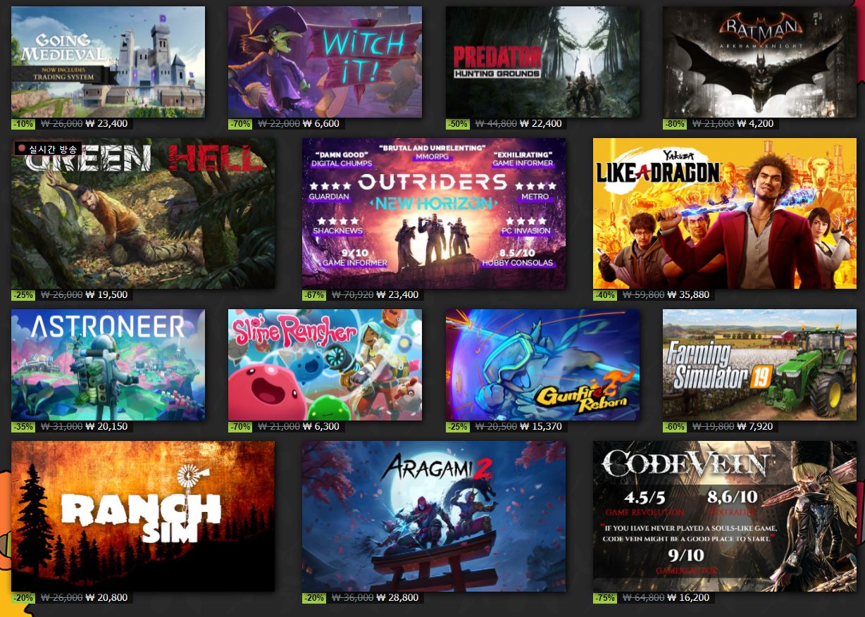 스팀 사이트에서 할인 이벤트를 진행하네요.