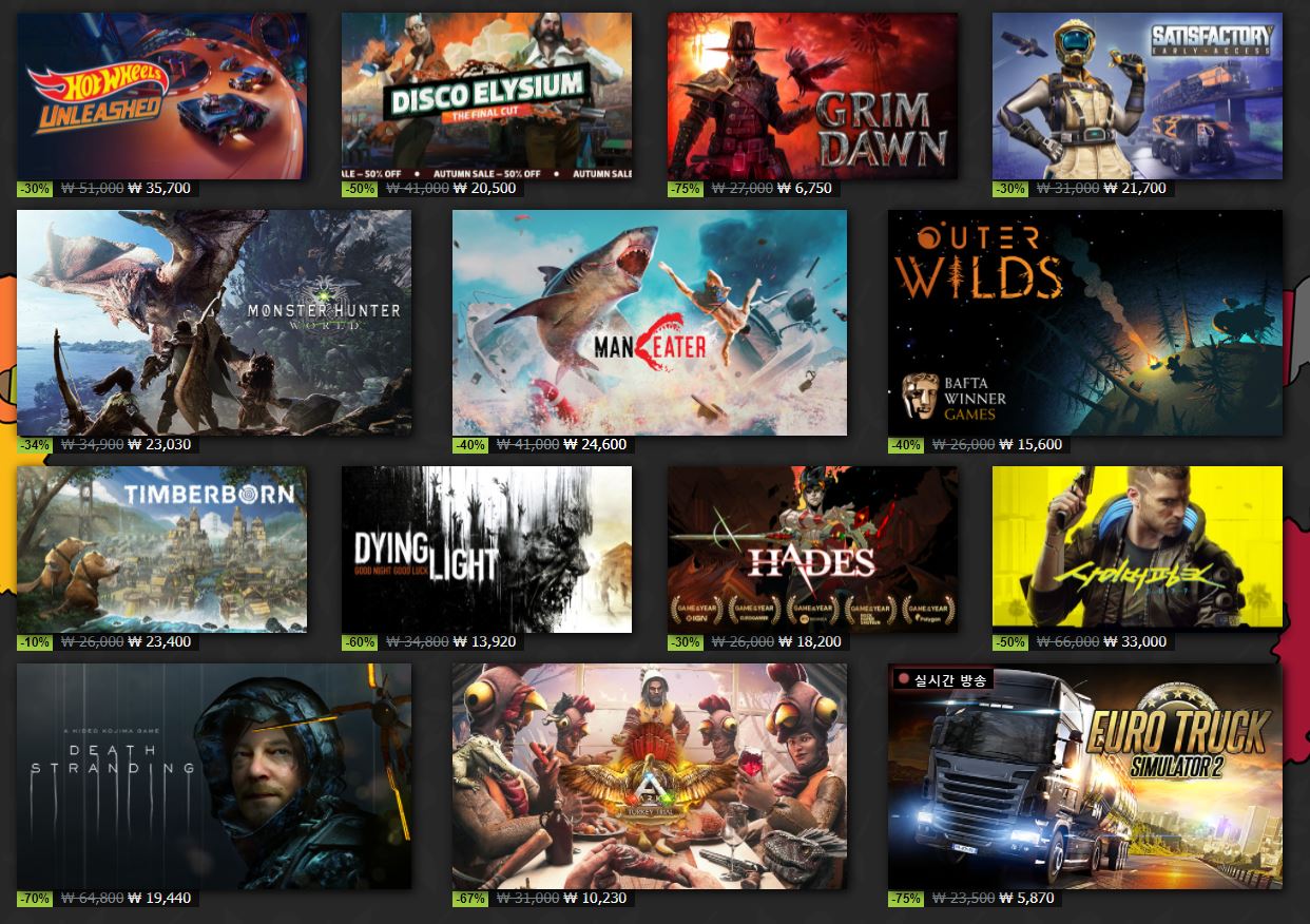 스팀 사이트에서 할인 이벤트를 진행하네요.