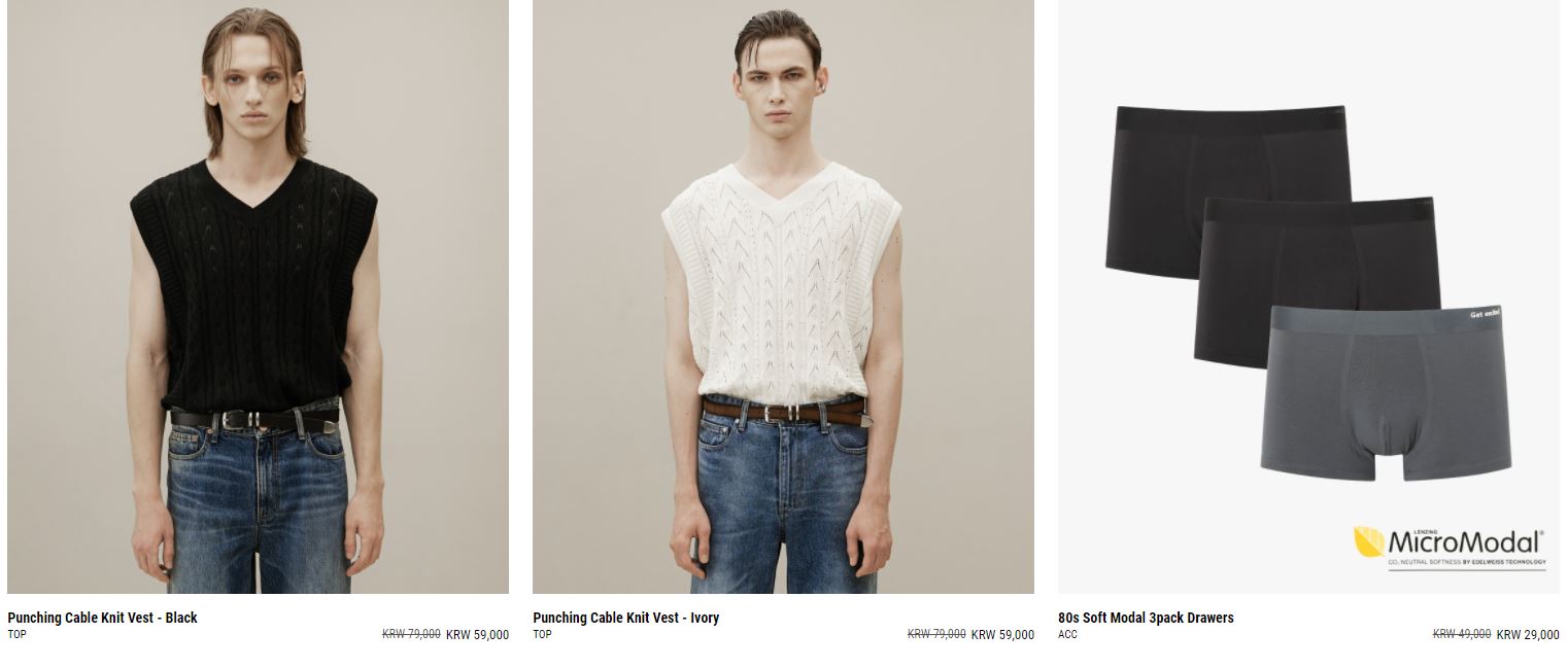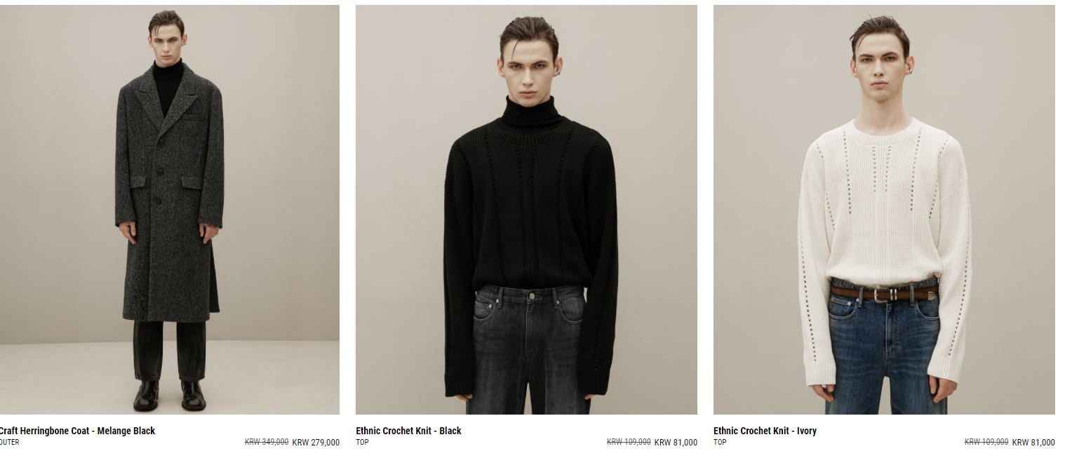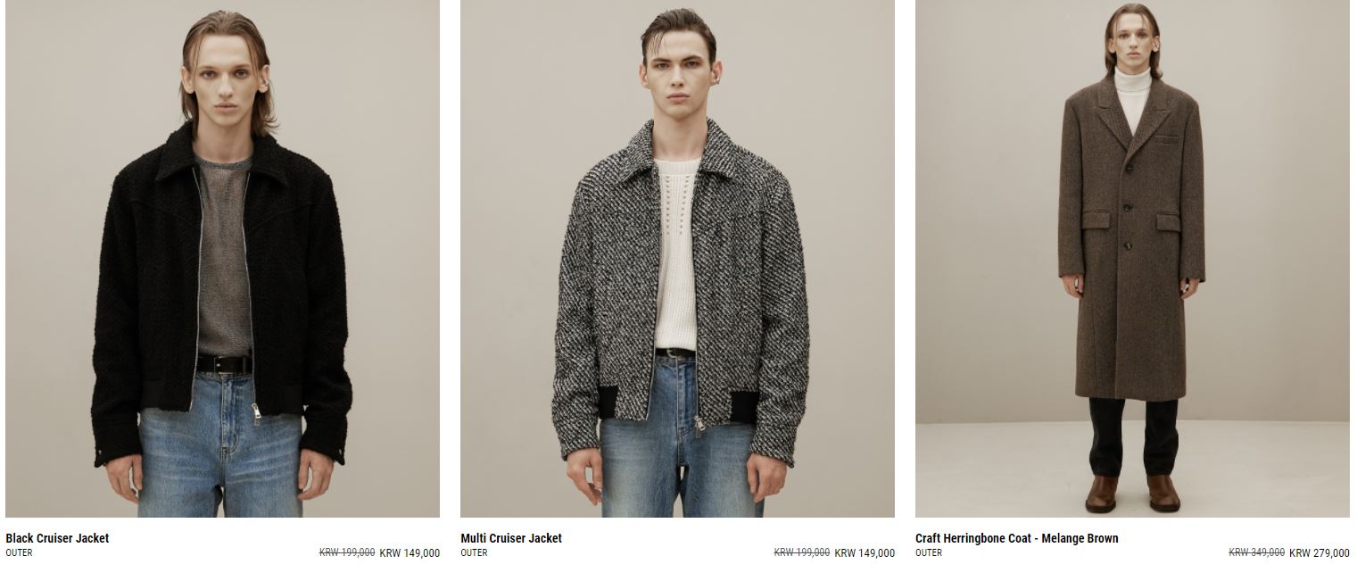 할인 품목 : 팬츠, 코트, 니트, 자켓 등