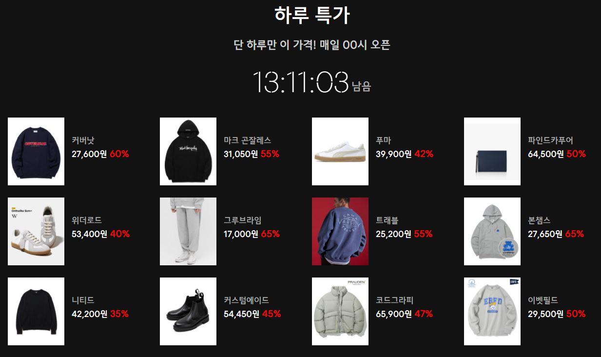 무신사 사이트에서 할인 이벤트를 진행하네요.