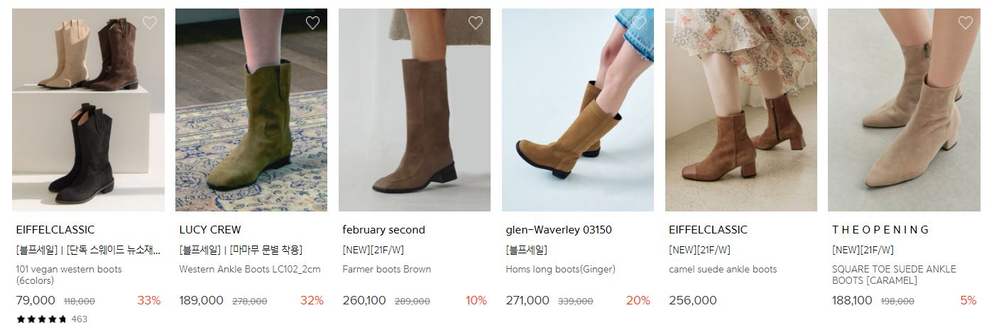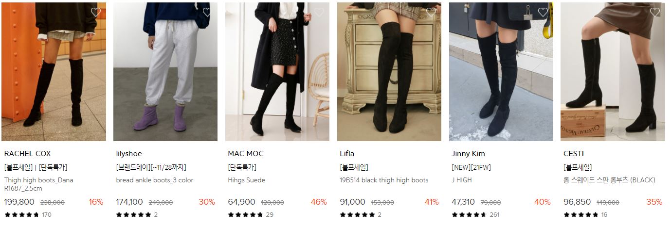 할인 품목 : 롱부츠, 로퍼 등