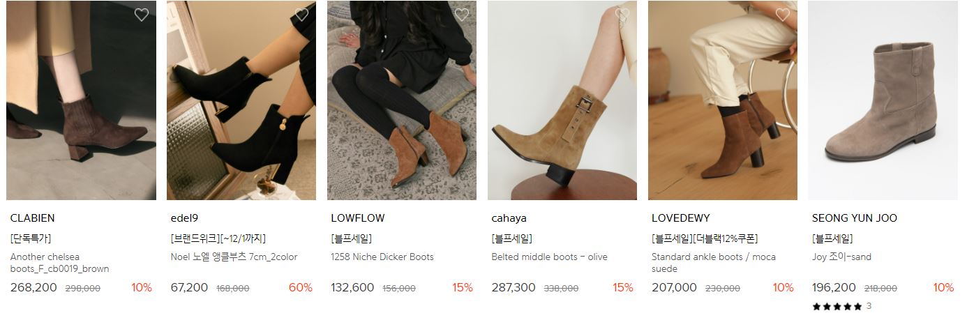 할인 품목 : 롱부츠, 로퍼 등