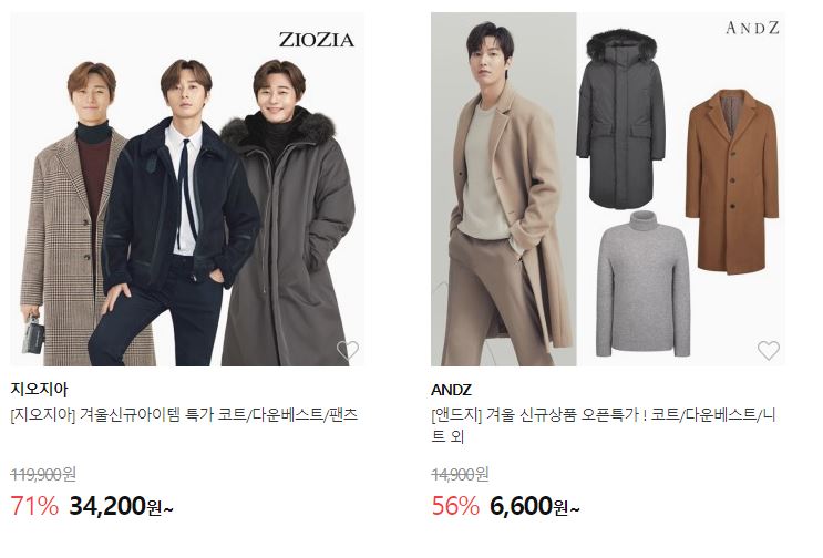 할인 품목 : 코트, 점퍼, 니트, 발열내의 등