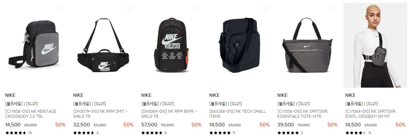 할인 품목 : 티셔츠, 운동화, 가방, 모자 등