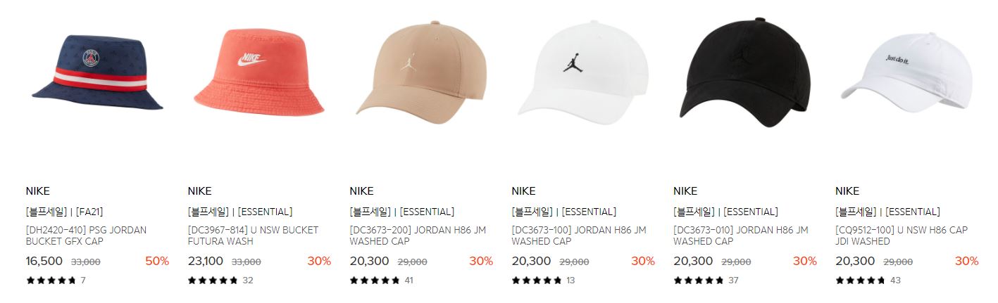 할인 품목 : 티셔츠, 운동화, 가방, 모자 등