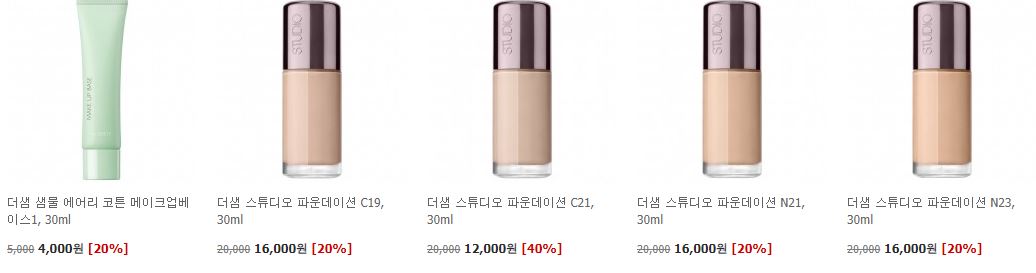 할인 품목 : 토너, 파운데이션, 컨실러 등