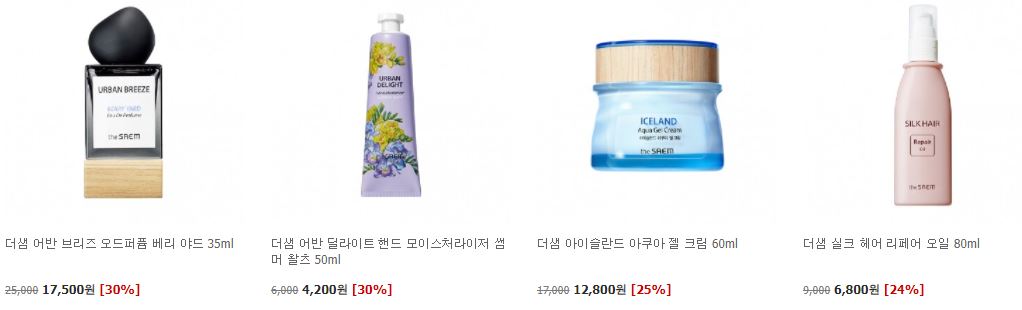 더샘 다양한 제품을 할인 판매하네요.