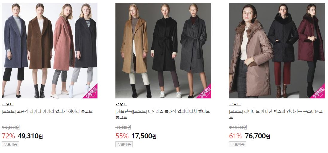 할인 품목 : 코트, 니트, 팬츠, 점퍼 등