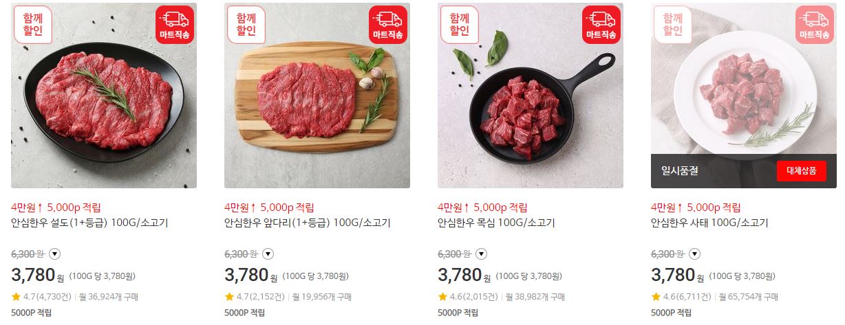 할인 품목 : 안심, 채끌, 부채살 등