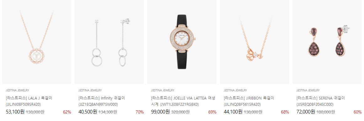 할인 품목 : 목걸이, 귀걸이, 가방, 시계 등