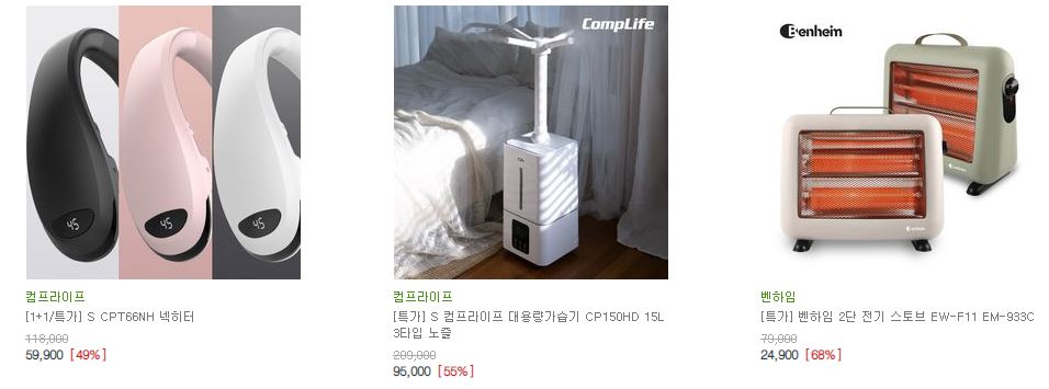 할인 품목 : 노트북, 무선 이어폰, 에어프라이어 등