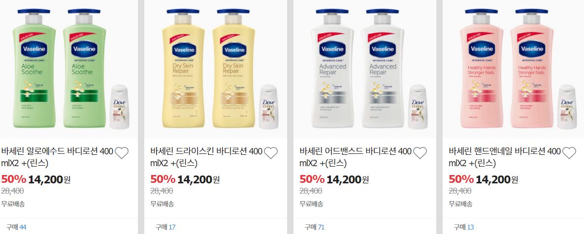 바세린/도브 외 최대 50% 세일 정보 포스팅입니다.