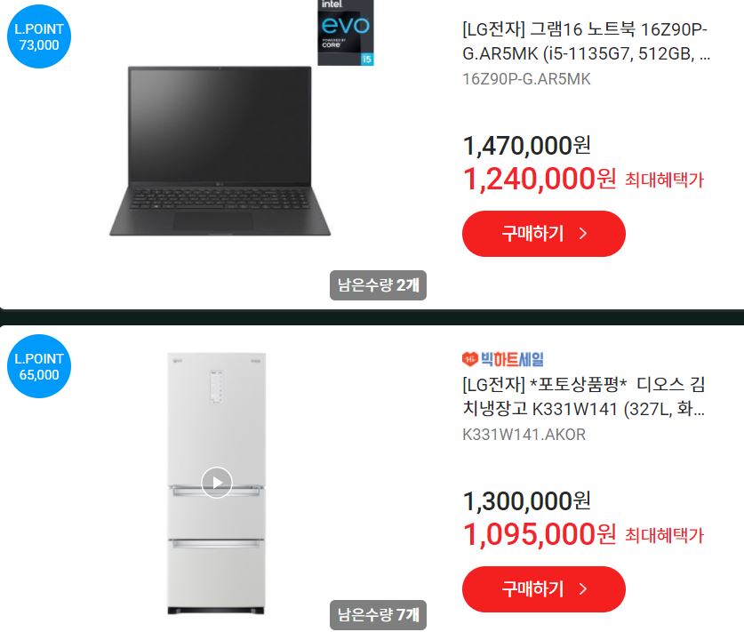 할인 품목 : 노트북, 전기요, 스마트워치 등