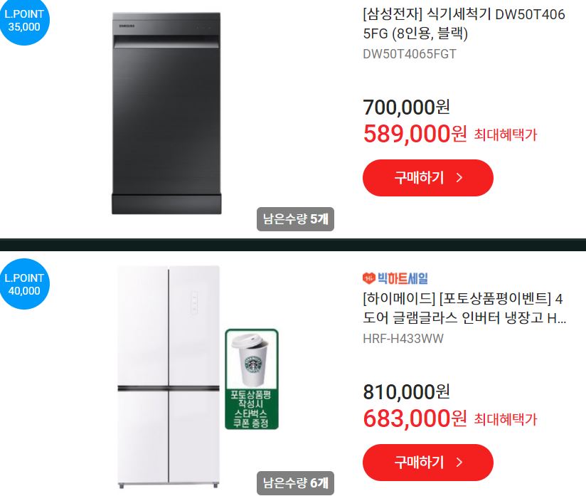 하이마트 사이트에서 할인 이벤트를 진행하네요.