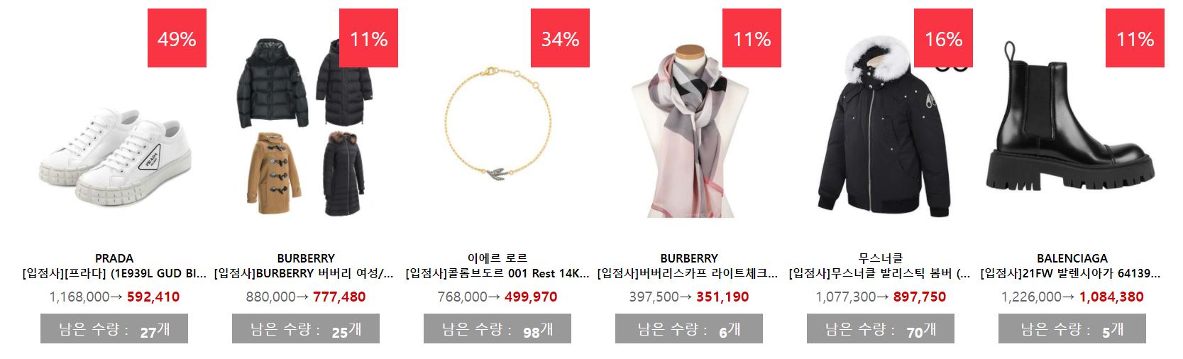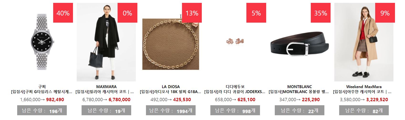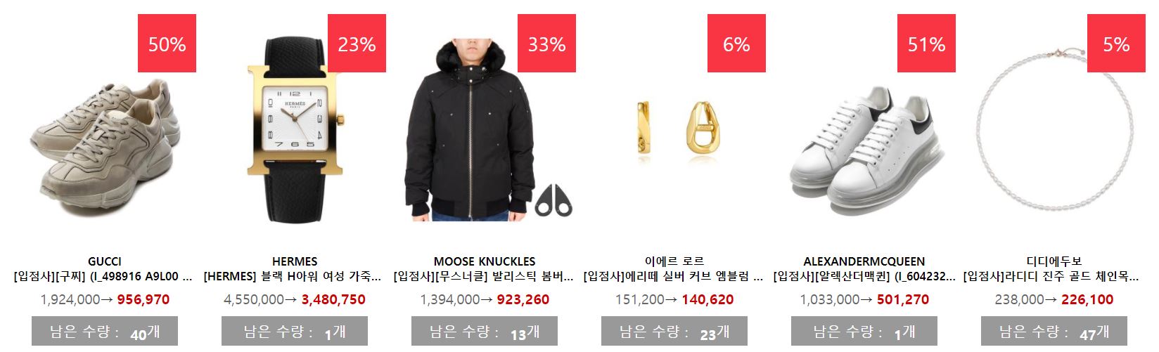 할인 품목 : 지갑, 운동화, 시계 등