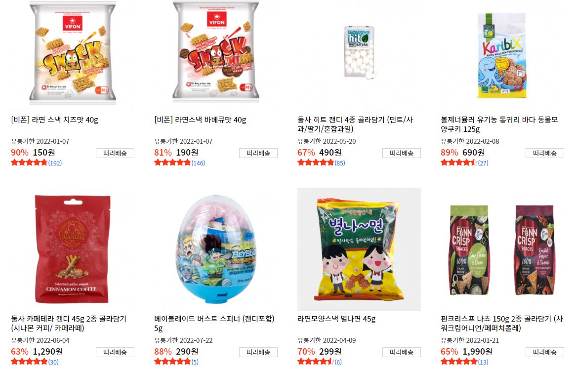 할인 품목 : 스낵, 카라멜, 캔디, 음료 등
