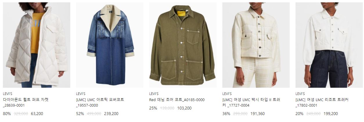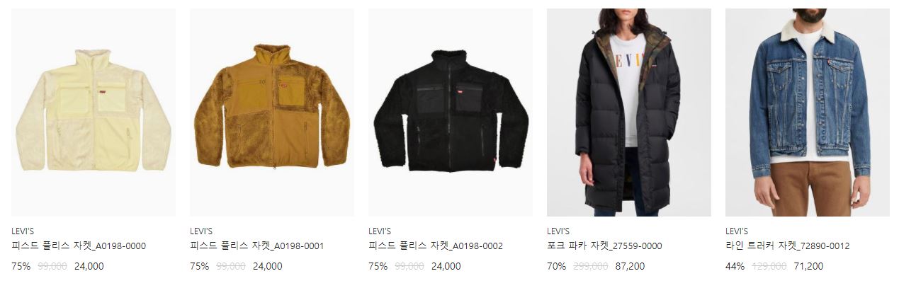 리바이스 다양한 제품을 할인 판매하네요.
