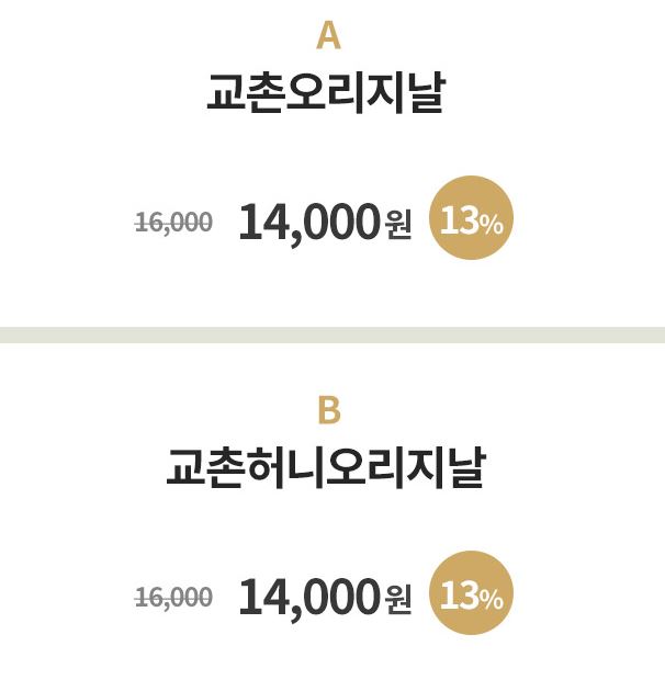 할인 메뉴 : 교촌오리지날, 교촌허니오리지날 등