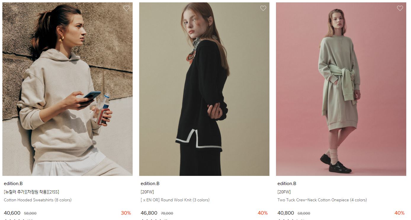 에디션.B 다양한 제품을 할인 판매하네요.