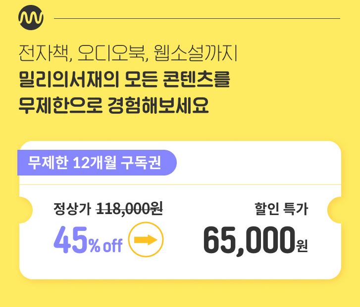 밀리의 서재 12개월 구독권 45% 할인 정보 [링크]