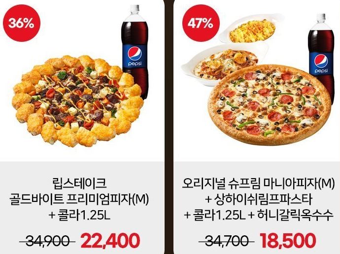 피자헛 다양한 메뉴를 할인 판매하네요.